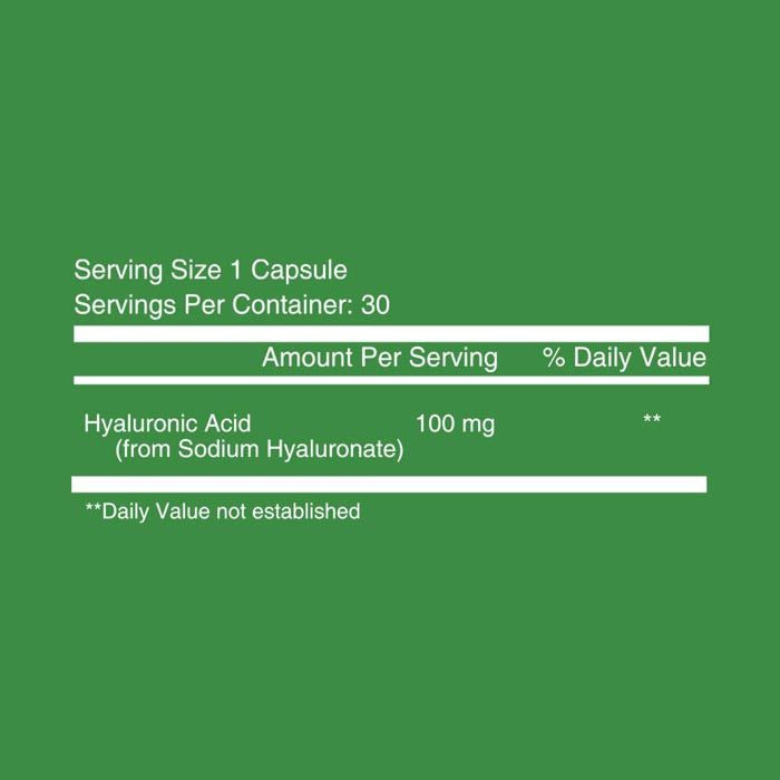 NUTRITIONL Hyaluronic acid capsules contain 100mg of Hyaluronic acid which is