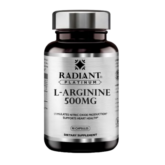 Radiant Platinum L-Arginine 500mg, Nitric Oxide Booster, Heart Health & Muscle Recovery Support - 90 Capsules