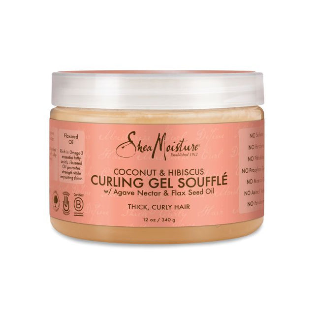 Define your curls with Shea Moisture Coconut & Hibiscus Curling Gel Soufflé. Infused with Agave Nectar, Flaxseed Oil, and Coconut Oil, this naturally-derived formula deeply hydrates, enhances curl definition, and adds glossy shine. Perfect for wavy, curly, or coily hair, it delivers long-lasting hold, frizz control, and soft, bouncy curls without residue or crunch.