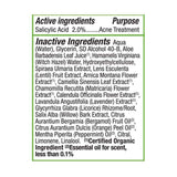 Salicylic Acid 2.0 % Inactive Ingredients: Aqua (Water), Glycerin, SD Alcohol 40-B, Aloe Barbadensis Leaf Juice (1), Hamamelis Virginiana (Witch Hazel) Water, Hydroxyethylcellulose, Spiraea Ulmaria Extract, Lens Esculenta (Lentil) Fruit Extract, Arnica Montana Flower Extract (1), Camellia Sinensis Leaf Extract (1), Chamomilla Recutita (Matricaria) Flower Extract (1), Calendula Officinalis Flower Extract (1), Lavandula Angustifolia (Lavender) Extract (1), Glycyrrhiza Glabra (Licorice) Rhizome/Root, Salix Alba (Willow) Bark Extract, Citrus Aurantium Bergamia (Bergamot) Fruit Oil (2), Citrus Aurantium Dulcis (Orange) Peel Oil (2), Mentha Piperita (Peppermint) Oil (2), Citral, Limonene, Linalool. (1)Certified Organic Ingredient (2)Natural Fragrance