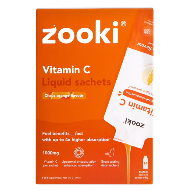 Zooki Liposomal Vitamin C 1000mg Orange Flavor Liquid Sachets 15ml, Pack of 14's