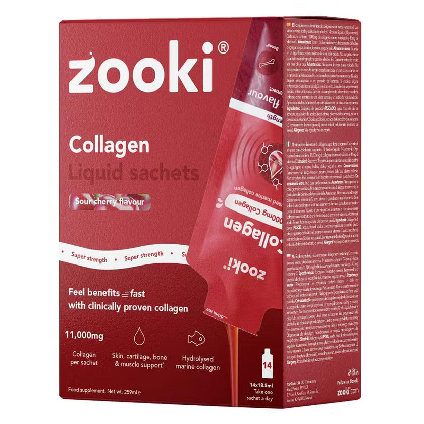 Zooki Super Strength Marine Collagen 11000mg Sour Cherry Flavor Liquid Sachets 18.5ml, Pack of 14's