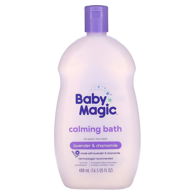Baby Magic Lavender & Chamomile Calming Bath is a gentle, tear‑free cleansing wash designed to help soothe your baby’s senses while leaving their delicate skin soft, clean, and comforted. Infused with calming lavender and chamomile, this bath formula creates a peaceful, aromatic lather that transforms bath time into a relaxing nighttime ritual.