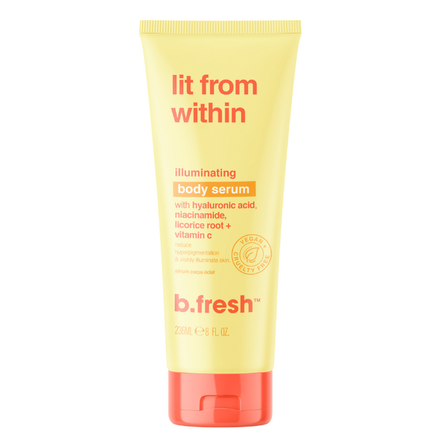 B.Fresh Illuminating Body Serum 236ml is a lightweight yet powerful body treatment crafted to enhance skin’s natural glow, improve texture, and deliver lasting hydration. Its formula combines botanical extracts, brightening antioxidants, and natural moisturizers to revitalize dull skin and promote a radiant, even-toned appearance.