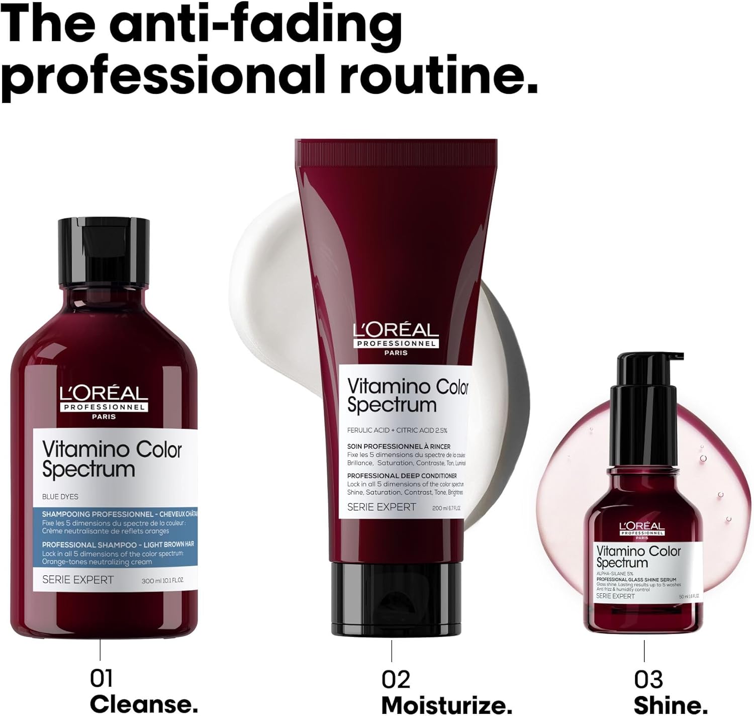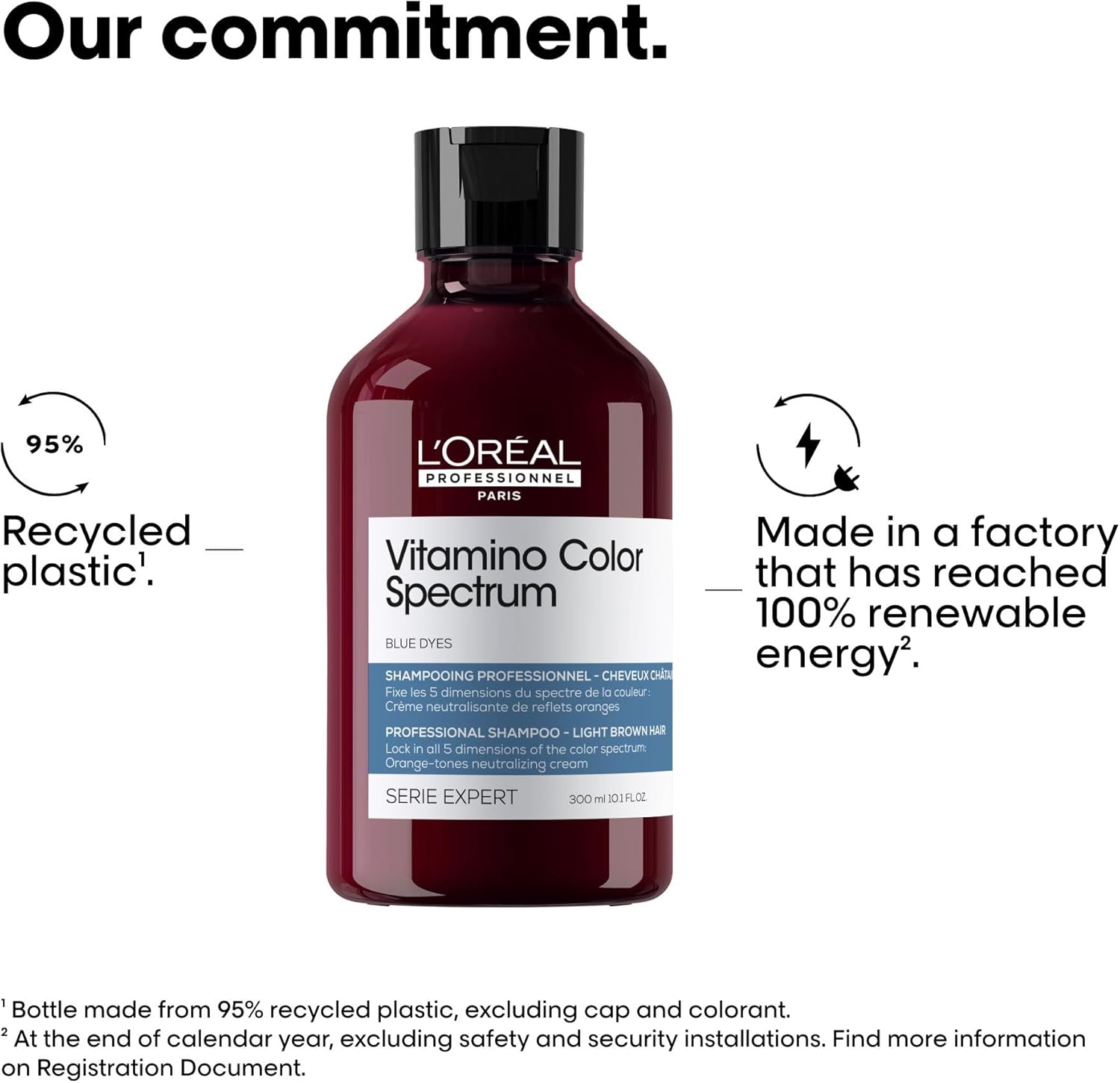 L'Oréal Professionnel Vitamino Color Spectrum Blue Shampoo is a salon-grade toning cleanser designed to neutralize unwanted orange and brassy undertones in color-treated hair. Ideal for cool-toned brunettes, dark blondes, and balayage-treated hair, this blue-pigmented formula enhances color clarity while gently cleansing the scalp and strands.