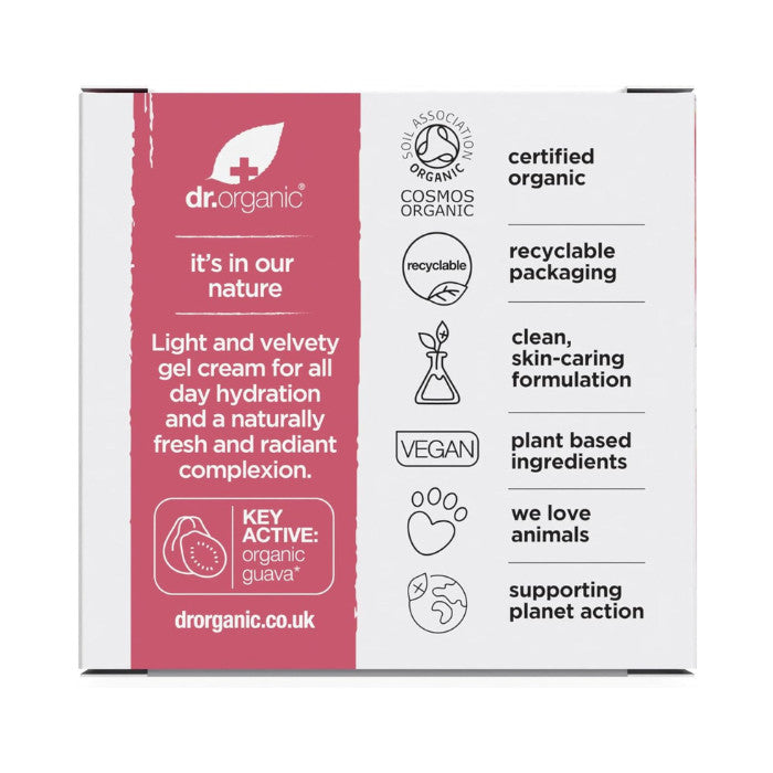 Dr.Organic Guava Vitamin C Cream is a tropical-infused daily moisturizer formulated to replenish and reinvigorate skin that appears dull, tired, or dehydrated. Powered by organic guava fruit extract, naturally rich in vitamin C, this cream helps to brighten the complexion, even skin tone, and support collagen synthesis.