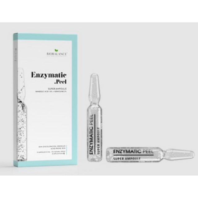 Bio Balance Super Ampoule Enzymatic Peel is a dual-action resurfacing treatment that combines 10% mandelic acid (an alpha hydroxy acid derived from bitter almonds) with 2% keratoline (a bio-fermented enzyme from Bacillus subtilis) to deliver superficial dermal peeling without irritation. This formula is specifically designed for sensitive, acne-prone, and discolored skin, offering a gentler alternative to glycolic or lactic acid peels.